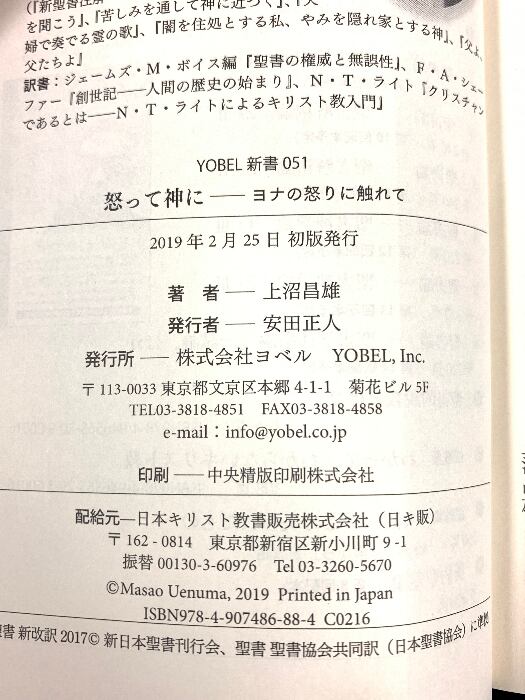 怒って神に: ヨナの怒りに触れて (YOBEL新書 51) ヨベル 上沼 昌雄