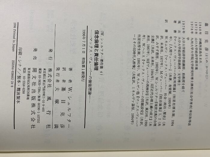 タイトル:信念倫理と責任倫理: マックス・ヴェ-バ-の価値理論 (W=シュルフター著作集 4) 風行社 W.シュルフター