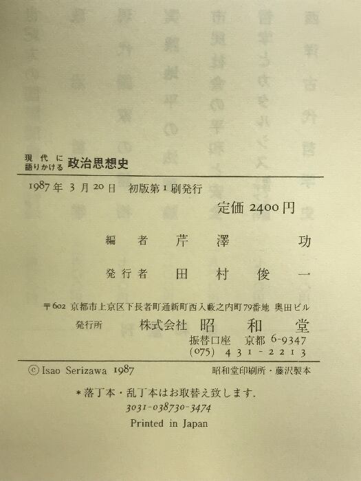 タイトル:現代に語りかける政治思想史 昭和堂 芹澤 功