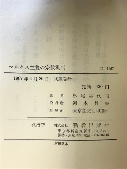 …本書は、マルクス主義の宗教論について、これまで日本語で書かれまたは翻訳されているどんな書物にもまして精密な文献学的な研究労作であると言えよう。…著者は広範な左翼文献のみならず、最近までの、主として独・仏の関係神学文・・・