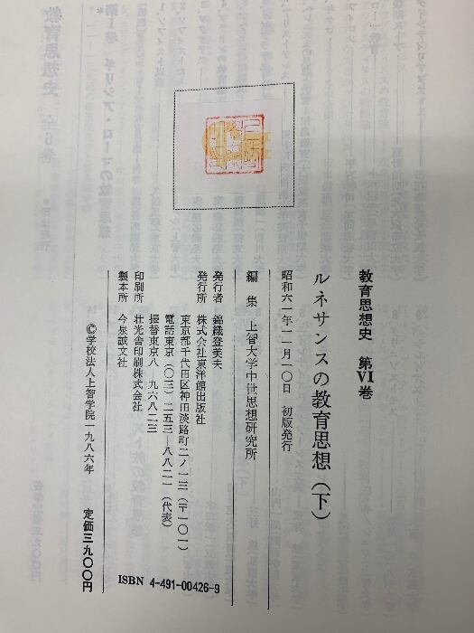タイトル:ルネサンスの教育思想 (下) 東洋館出版社 上智大学中世思想研究所