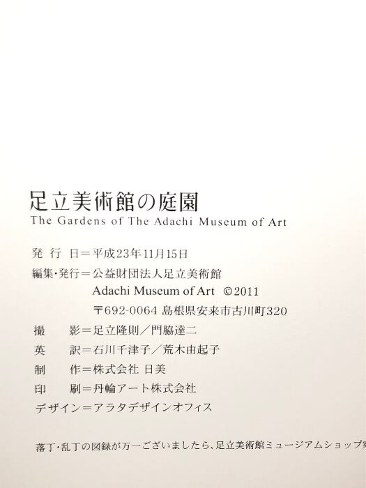 【図録】足立美術館の庭園 the Garden of The Adachi Museum of Art 公益財団法人足立美術館