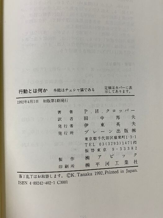 タイトル:行動とは何か: 本能はチェシャ猫である ブレーン出版 P.H. クロッパー
