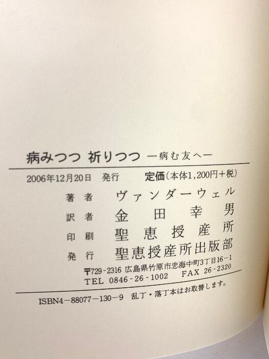 タイトル:病みつつ祈りつつ―病む友へ 聖恵授産所出版部 金田幸男