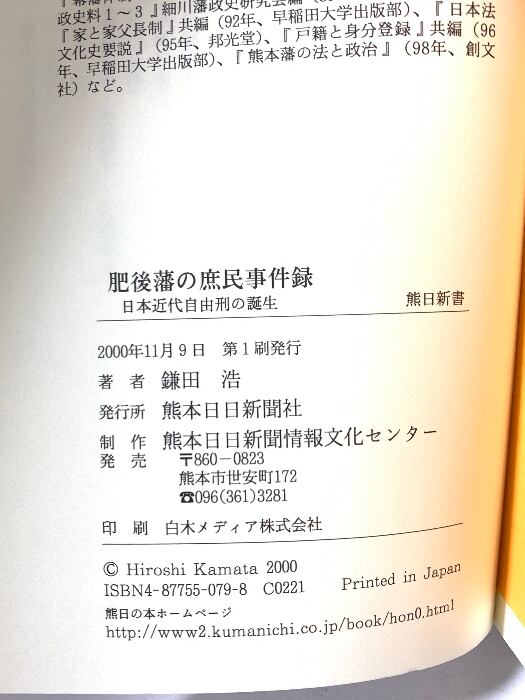 タイトル:肥後藩の庶民事件録 日本近代自由刑の誕生 (熊日新書) 熊本日日新聞情報文化センター 鎌田 浩