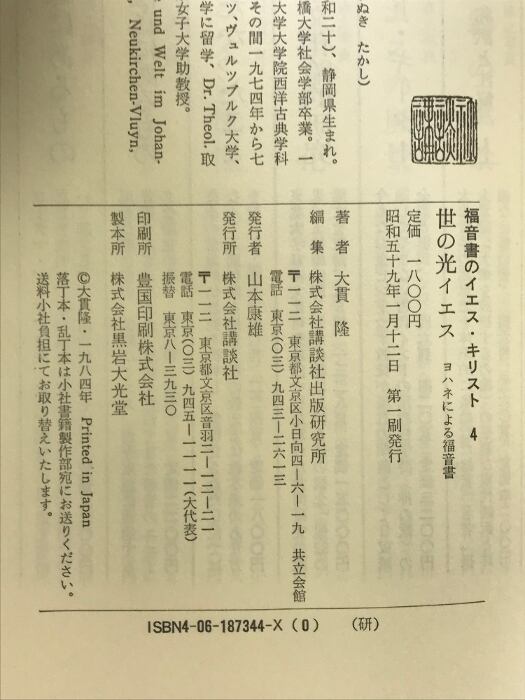 福音書のイエス・キリスト〈4〉世の光イエス―ヨハネによる福音書 講談社 大貫 隆