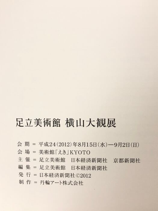 タイトル:【図録】横山大観展 足立美術館 2012 日本経済新聞社