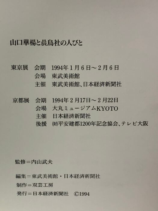タイトル:【図録】山口華楊と晨鳥社の人びと 1994 東武美術館 日本経済新聞社