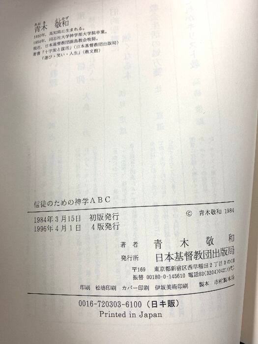タイトル:信徒のための神学ABC (1984年) 日本基督教団出版局 青木 敬和