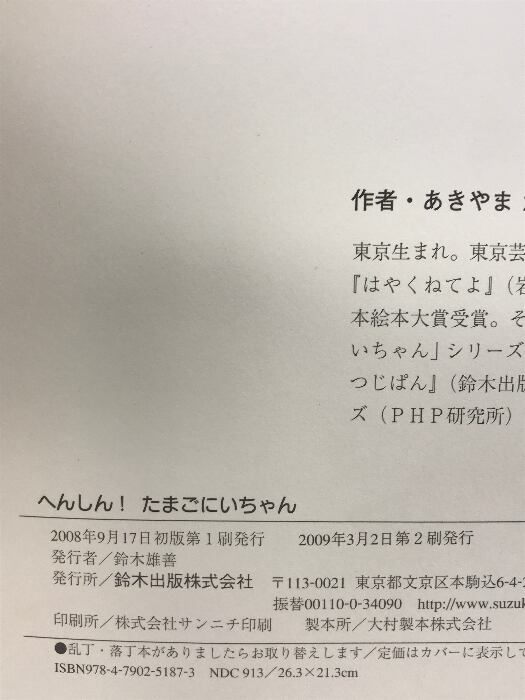 タイトル:へんしん!たまごにいちゃん (ひまわりえほんシリーズ) 鈴木出版 あきやま ただし