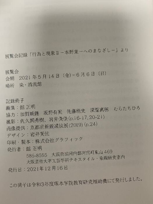 図録 行為と現象Ⅱ 展覧会記録 本野東一へのまなざしより 舘正明 2021