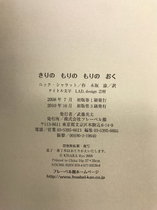 タイトル:きりのもりのもりのおく フレーベル館 ニック シャラット