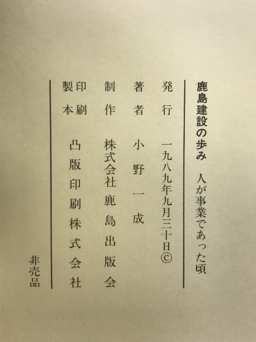 タイトル:鹿島建設の歩み-人が事業であった頃 株式会社 鹿島出版会 小野 一成