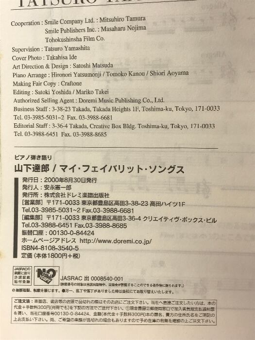 タイトル:ピアノ弾き語り 山下達郎 マイフェバリットソングス (PLAY ON THE PIANO ピアノ弾き語り) ドレミ楽譜出版社