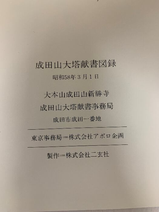 図録 成田山大塔献書 大本山成田山新勝寺 株式会社アポロ企画 1983