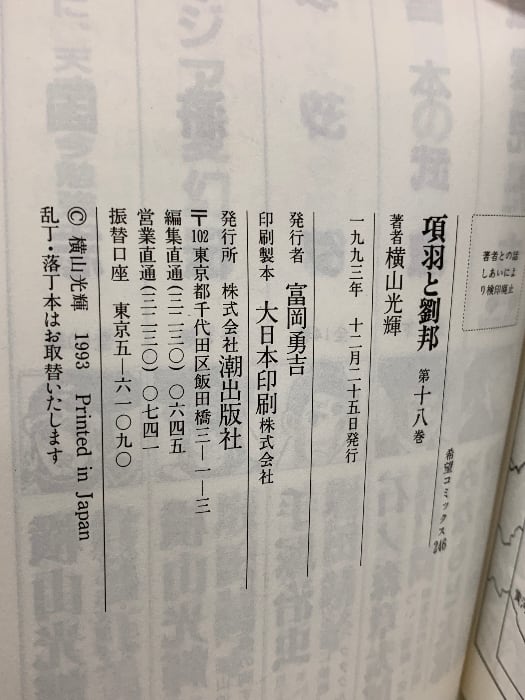 初版 項羽と劉邦―若き獅子たち (18) 韓信斉奪取 潮出版社 横山 光輝