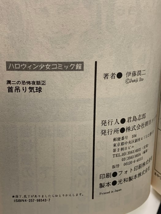 首吊り気球: 潤二の恐怖夜話 2 朝日ソノラマ 伊藤 潤二