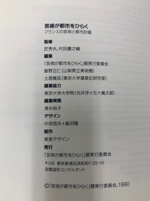 芸術が都市をひらくーフランスの芸術と都市計画 匠秀夫 「芸術が都市をひらく」展実行委員会 1990 1991