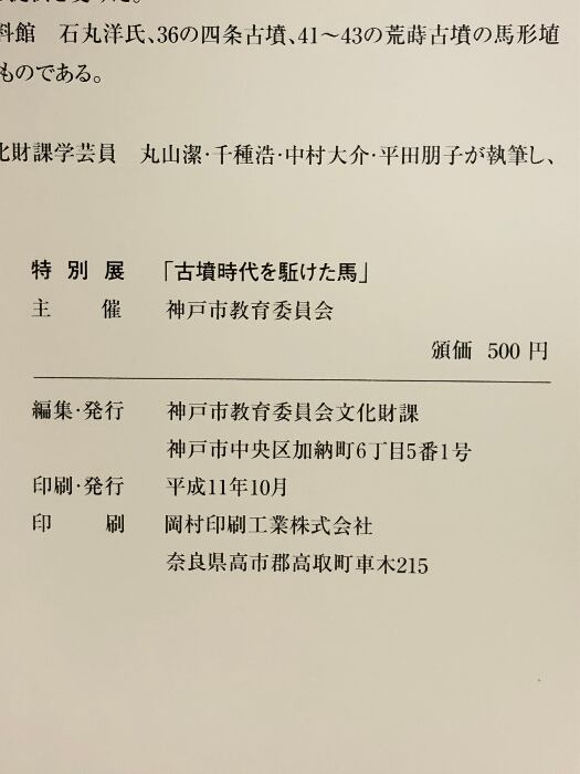 【図録】古墳時代を駈けた馬 1999 神戸市教育委員会 岡村印刷工業株式会社