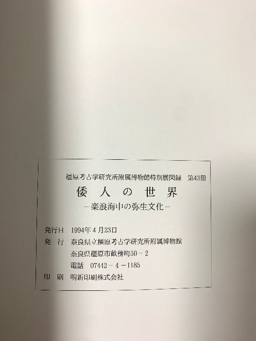 タイトル:図録 春季特別展 倭人の世界 奈良県立橿原考古学研究所付属博物館 1994