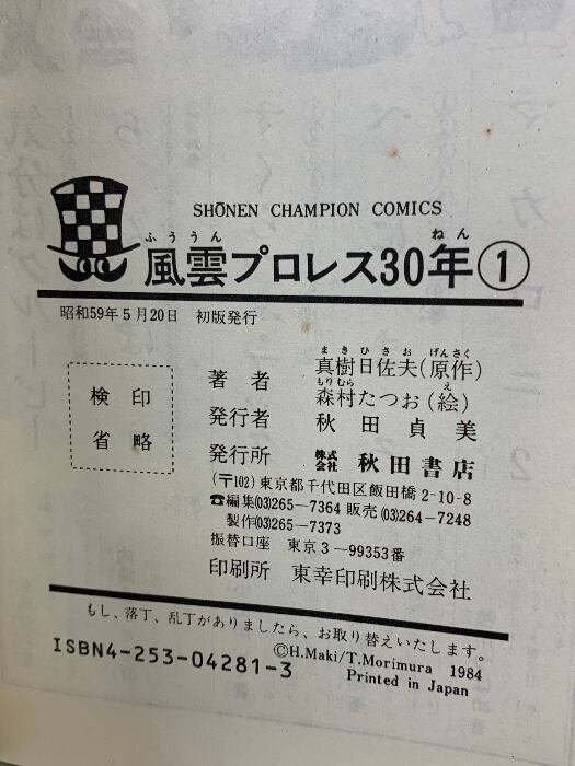 初版 風雲プロレス30年 1 力道山光浩: 力道山からタイガー・マスクまで 秋田書店 真樹 日佐夫