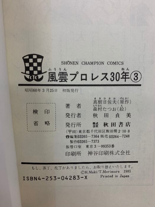 タイトル:風雲プロレス30年 3: 力道山からタイガー・マスクまで 秋田書店 真樹 日佐夫
