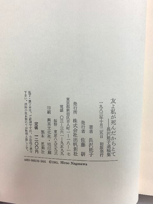 タイトル:初版 友よ私が死んだからとて―長沢延子遺稿集 (1983年)