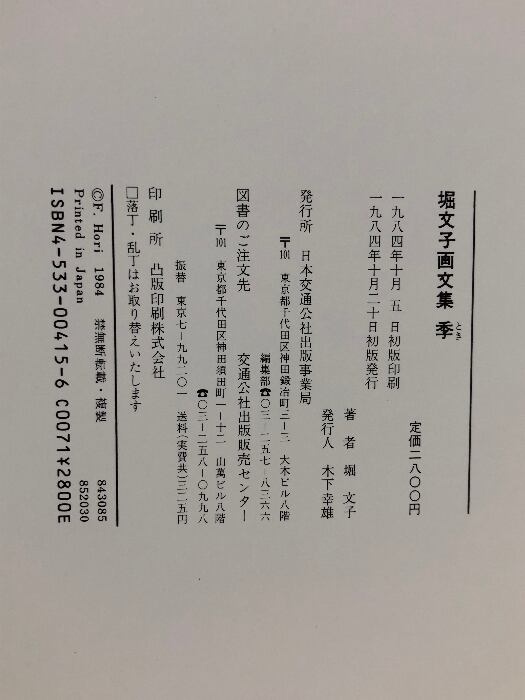 タイトル:【画集】堀文子画文集 季 日本交通公社 凸版印刷株式会社