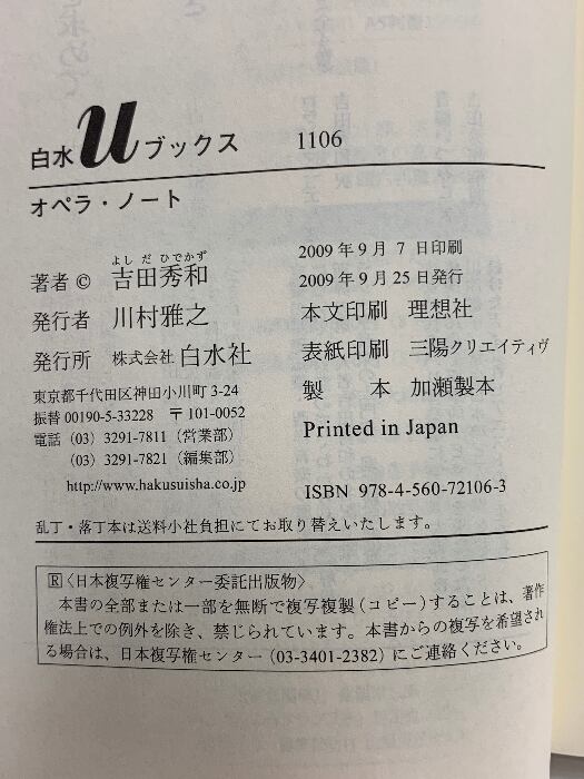 タイトル:オペラ・ノート 白水社 吉田 秀和