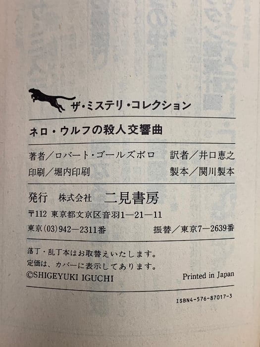 ネロ・ウルフの殺人交響曲 二見書房 ロバート ゴールズボロ