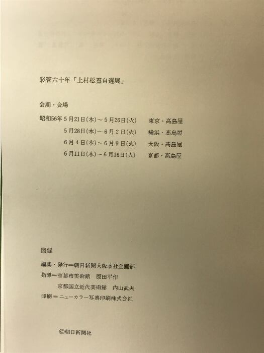 【図録】彩管六十年 上村松篁自選展 朝日新聞社 1981 発行:朝日新聞大阪本社企画部