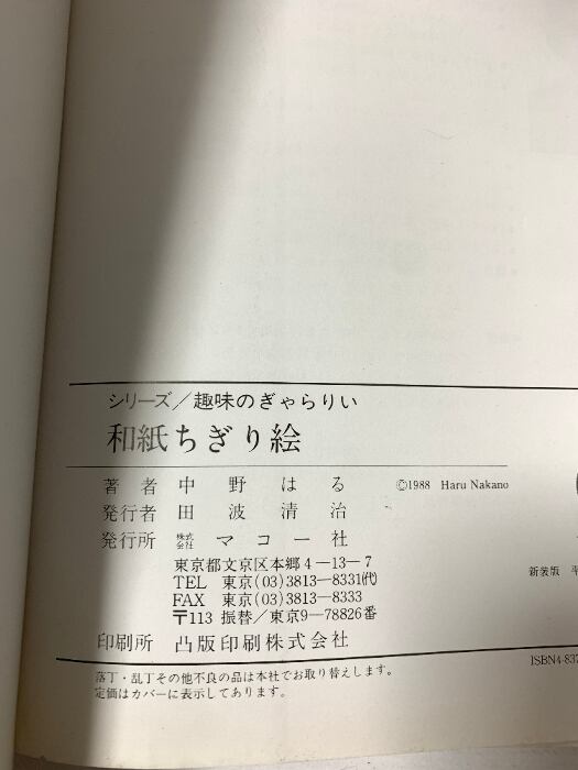 和紙ちぎり絵: 新装版 (趣味のぎゃらりい) マコー社 中野 はる
