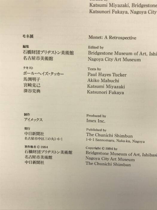 タイトル:【図録】MONET モネ展 1994 発行:中日新聞社