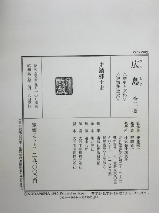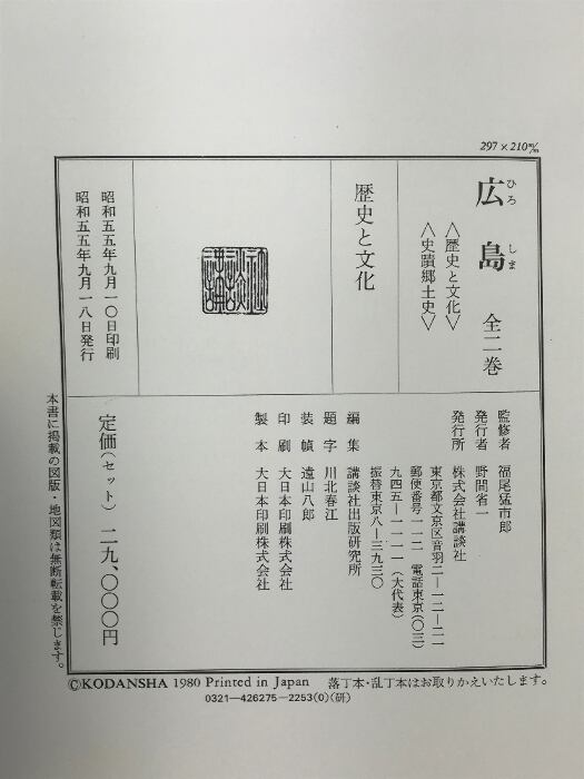 タイトル:広島 (歴史と文化・史蹟郷土史/全2冊セット)講談社 昭和55年