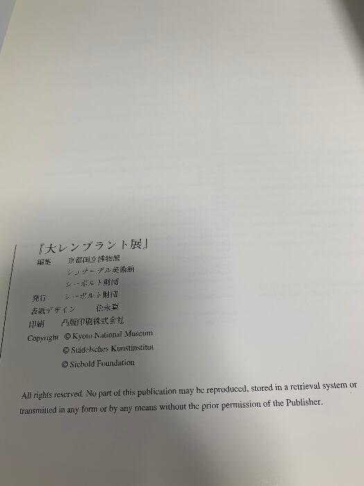 タイトル:図録 大レンブラント展 Rembrandt Rembrandt シーボルト財団 2002