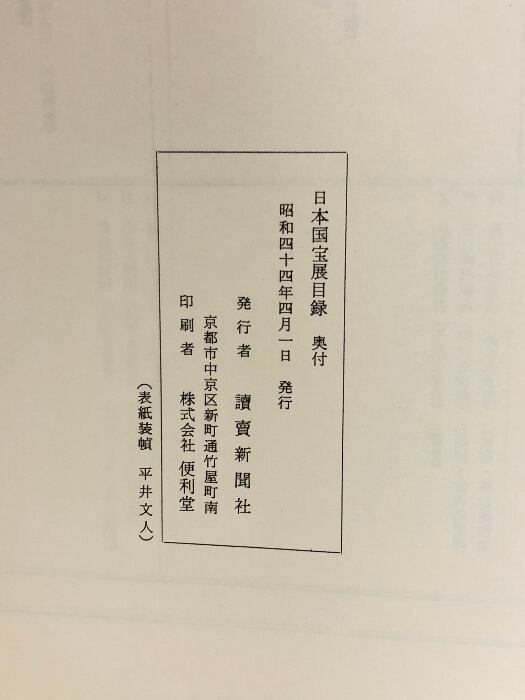 【図録】国寶 日本国宝展目録 1969 京都国立博物館 讀賣新聞社