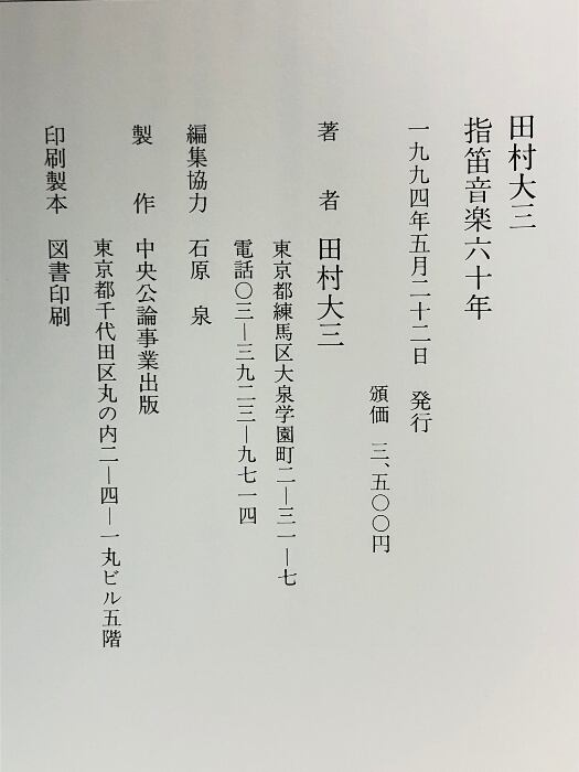 田村大三 指笛音楽六十年 石原泉 図書印刷