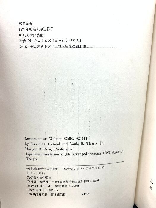 タイトル:生れ来る子への手紙 (1978年) 春秋社 デヴィッド・アイランド