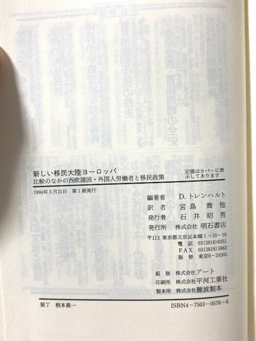 タイトル:新しい移民大陸ヨーロッパ: 比較のなかの西欧諸国・外国人労働者と移民政策 明石書店 ディートリヒ トレンハルト