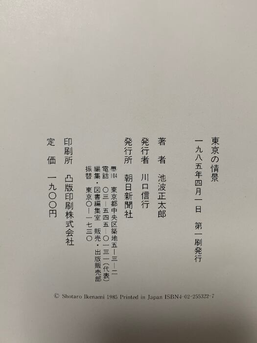 図録 東京の情景 朝日新聞出版 池波 正太郎