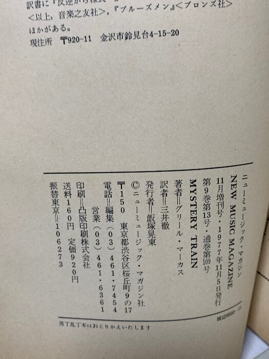 ロック音楽に見るアメリカのイメージ (ニューミュージック・マガジン 通巻109号) ニューミュージック・マガジン社 グリール・マーカス