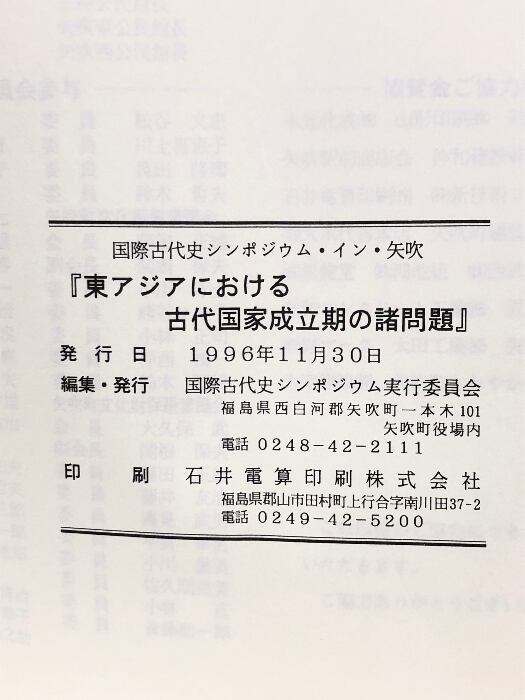 『東アジアにおける古代国家成立期の諸問題』国際古代史シンポジウム イン矢吹 国際古代史シンポジウム実行委員会 1996年11月