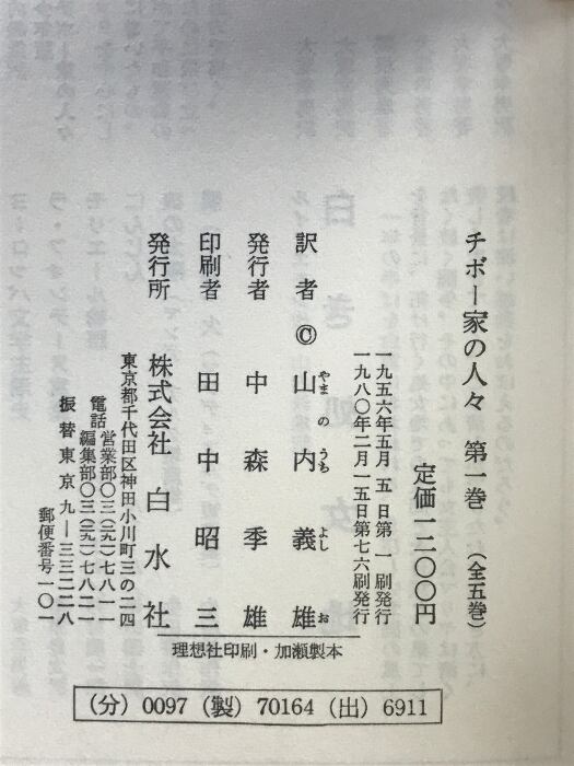 タイトル:チボー家の人々 (1~5巻/全5冊セット)白水社 マルタン・デュ・ガール :著 山内義雄:訳