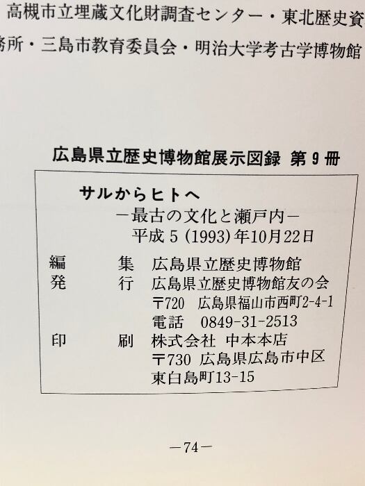 タイトル:【図録】サルからヒトへ 最古の文化と瀬戸内海 1993年 広島市立歴史博物館