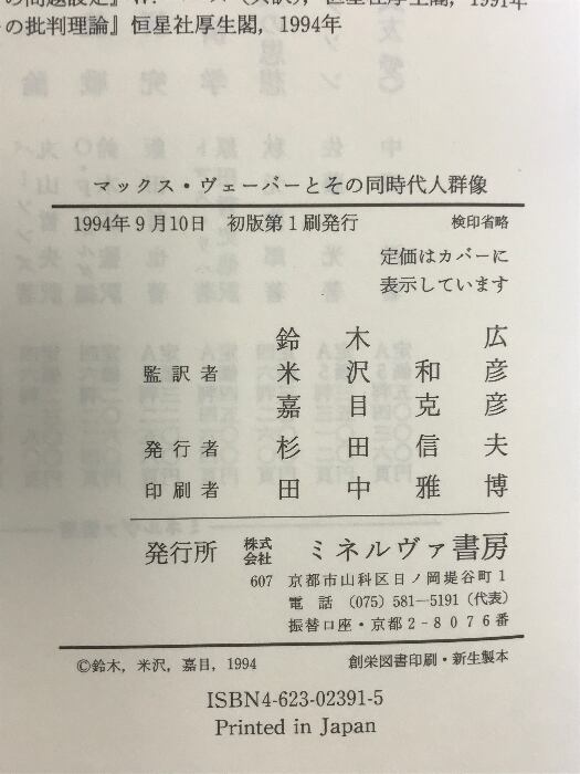 タイトル:マックス・ヴェ-バ-とその同時代人群像 ミネルヴァ書房 W.J.モムゼン