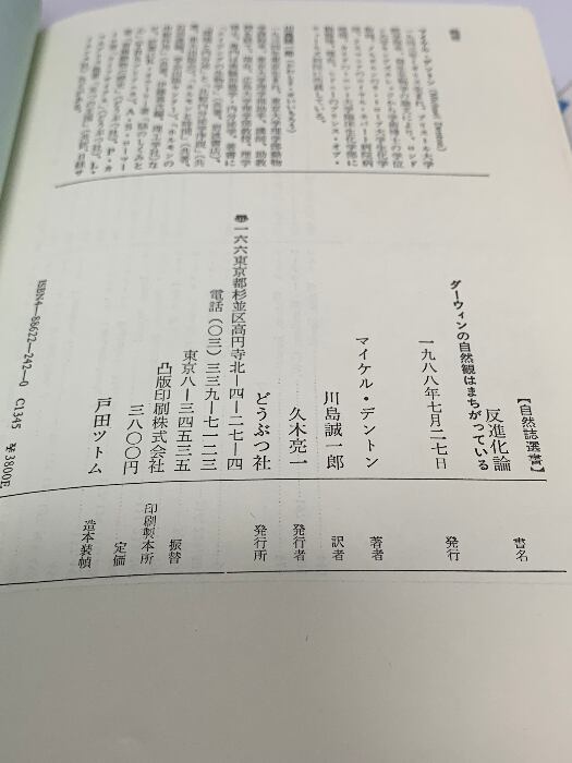 タイトル:反進化論: ダーウィンの自然観はまちがっている (自然誌選書) どうぶつ社 マイケル デントン