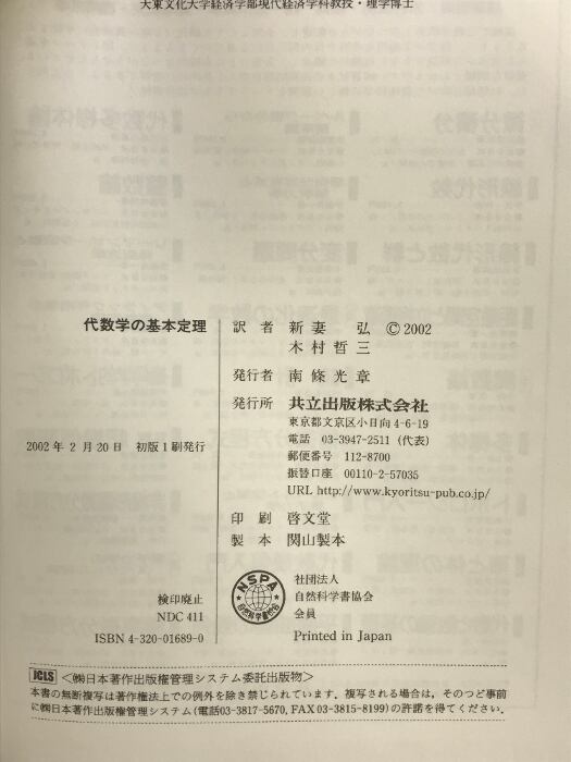 タイトル:代数学の基本定理 共立出版 B.Fine