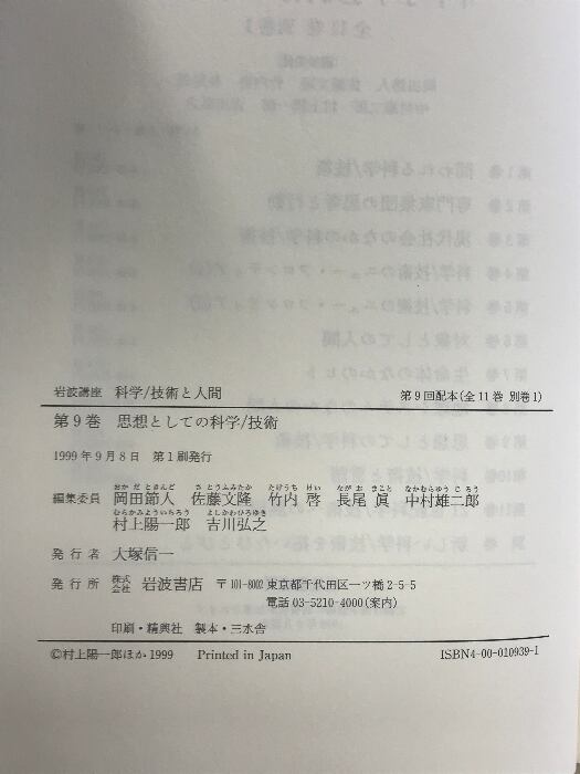タイトル:岩波講座 科学/技術と人間〈9〉思想としての科学/技術 岩波書店 岡田 節人