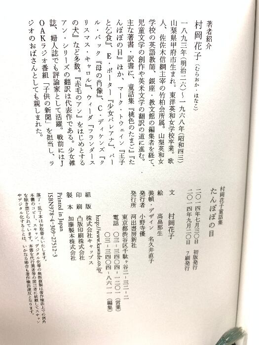タイトル:村岡花子童話集 たんぽぽの目 河出書房新社 村岡 花子