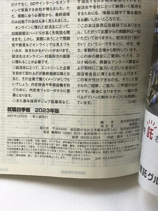 就職四季報 総合版 2023年版(就職シリーズ) 東洋経済新報社